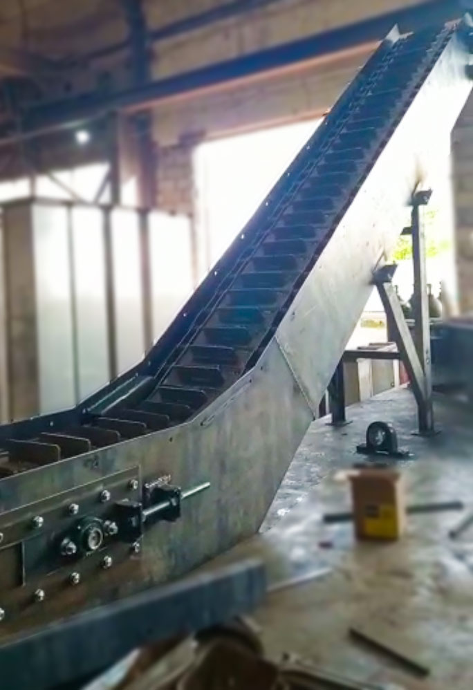 • Нагрузка на погонный метр: 50–300 кг/м — зависит от шага планок и числа рядов цепей; при ударных нагрузках усиливаем направляющие.